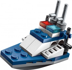 Profitez de nombreuses heures de jeu avec un ensemble de construction qui inspire la création et les reconstructions. À partir d'un set compact de 28 pièces, construisez trois modèles différents – du hors-bord rapide au bateau d'escorte avec des détails comme des antennes ou des feux. Le petit format de la boîte convient aux voyages et le jeu peut commencer partout.