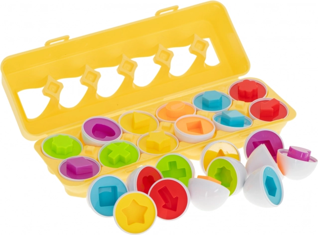 Le set comprend 12 œufs avec différentes formes et couleurs cachées sous la coquille. Le jeu consiste à associer les moitiés d’œufs par forme et par couleur pour former un tout. C’est non seulement amusant, mais aussi une activité éducative qui renforce la pensée logique. Les œufs sont légers et faciles à transporter, ce qui les rend idéaux pour occuper les enfants lors de longs trajets ou en salle d’attente chez le médecin.