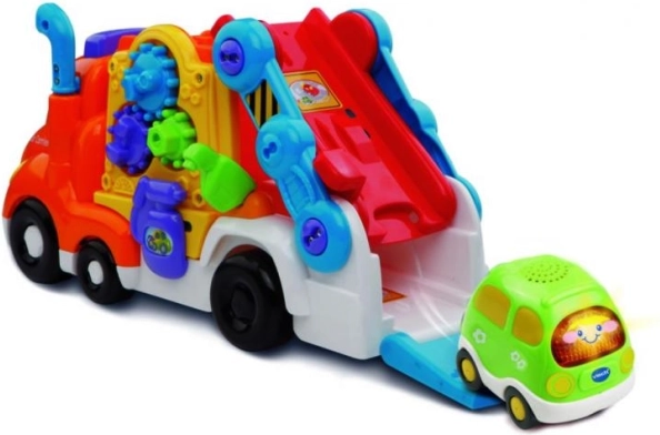 La voiture de service Tut Tut de VTech est le compagnon idéal pour les enfants qui veulent s’amuser tout en apprenant. Le jouet peut transporter jusqu’à quatre petites voitures Tut Tut et regorge d’éléments interactifs qui développent la motricité et l’imagination. Grâce aux points de contact « Smart point », il joue trois chansons et propose de nombreuses phrases amusantes, ce qui aide à développer le vocabulaire des enfants.