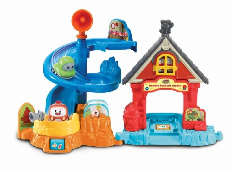 La caserne de pompiers interactive de Ferda, issue de la série Tut Tut Bolide Otík, avec lumières, musique et toboggan. Inclut les mini figurines de Ferda et Kristýnka.