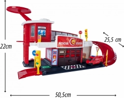 La station de secours Majorette Creatix est le meilleur complément à toute collection de jeux. La station dispose de deux niveaux pour différents scénarios de jeu, y compris un hélipad et une rampe de lancement pour les petites voitures. Les enfants peuvent jouer à des scénarios de sauvetage réalistes grâce aux panneaux de signalisation inclus et à d'autres accessoires.