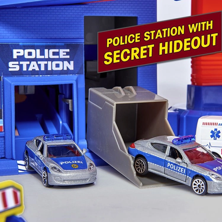 Des zones thématiques sont incluses, telles qu’un poste de police avec cachette secrète, une station de pompiers, une station-service et une station de lavage. Grâce au vaste stationnement pour jusqu’à 35 voitures et à une conception astucieuse, l’ensemble est idéal pour les frères et sœurs comme pour les amis. Un excellent cadeau qui favorise la motricité fine, l’imagination et le jeu coopératif.