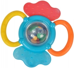 Combinaison de hochet et anneau de dentition en un, idéal pour les enfants à partir de 3 mois. Apporte du divertissement et stimule le développement sensoriel de l'enfant.