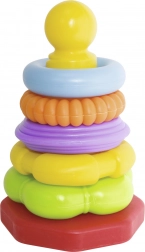 Pyramide avec anneaux colorés est un outil idéal pour le développement de la motricité et de la capacité de combinaison chez les enfants. Contient cinq anneaux de couleurs et de formes différentes.