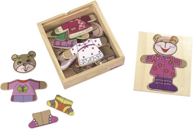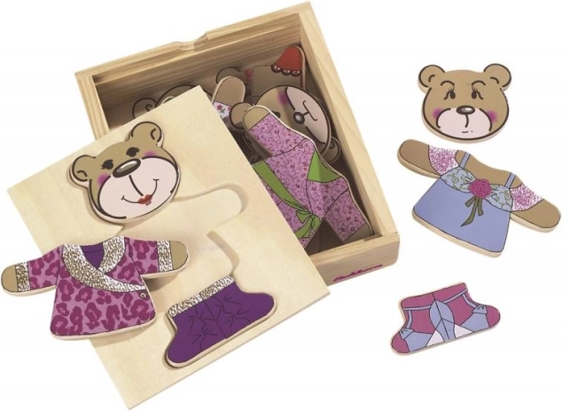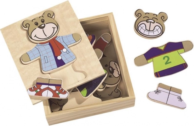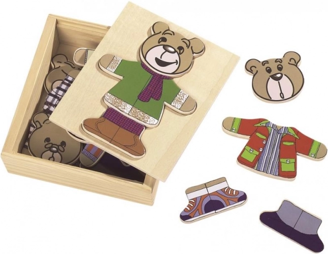 Habillez votre ours avec ce puzzle amusant ! Comprend 20 pièces et est livré dans une pratique boîte en bois.