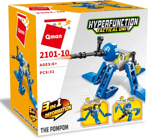 Découvrez le mini-set de la série hyperfunction tactical unit, qui permet aux enfants de construire un super robot, une tour de défense et une créature mécanique. Grâce à une conception astucieuse et à 31 pièces, les petits constructeurs développent leur motricité fine, leur patience et leur imagination – le tout avec des briques résistantes en plastique ABS de qualité.