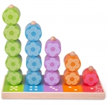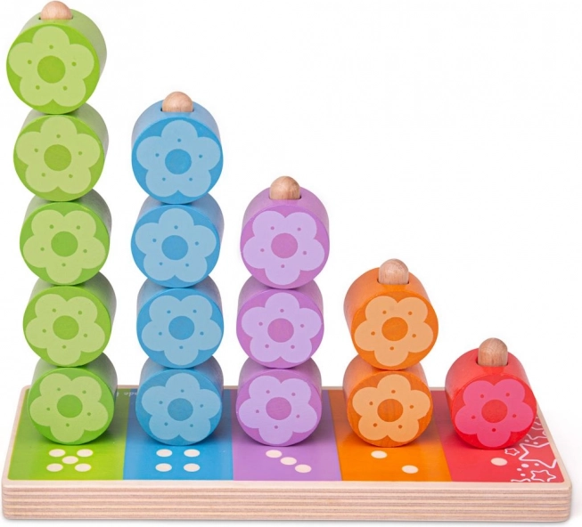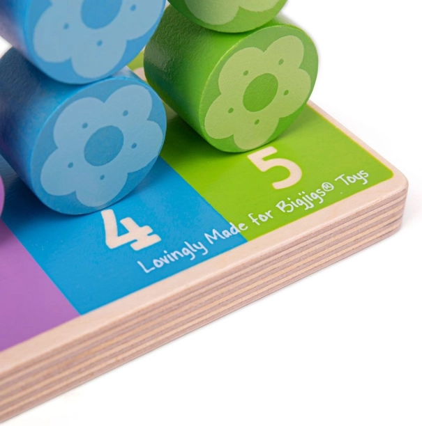 Chaque tige possède son nombre et sa couleur, permettant aux enfants de comprendre facilement le principe d’appariement et de quantité. Les pièces en forme de fleurs se tiennent aisément même par de petites mains et encouragent le jeu autonome ainsi que la découverte partagée avec les parents.