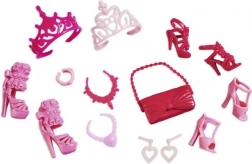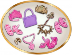 Le set comprend différentes robes de soirée, des éléments scintillants et des accessoires thématiques comme des diadèmes, chaussures, sacs et bijoux, tous interchangeables. Cette diversité garantit des heures de jeu créatif et autonome.