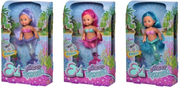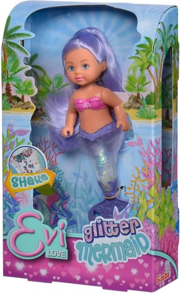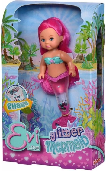 Découvrez le monde magique sous-marin avec la poupée Evi Love en sirène. Sa queue est remplie de paillettes qui s’agitent joliment lorsqu’on la secoue et créent un effet lumineux. Grâce à sa hauteur compacte de 14 cm, la poupée est facile à tenir même pour les plus jeunes et idéale pour les déplacements.