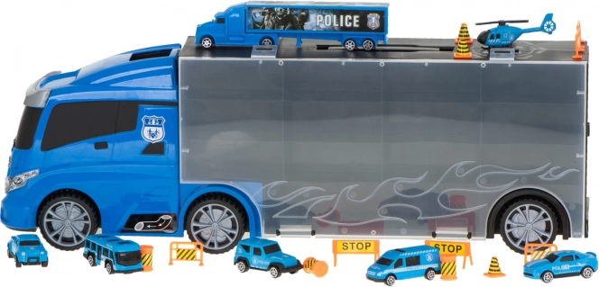 Comprend 6 véhicules de police en métal, un hélicoptère et des accessoires de circulation pour des scénarios réalistes.
