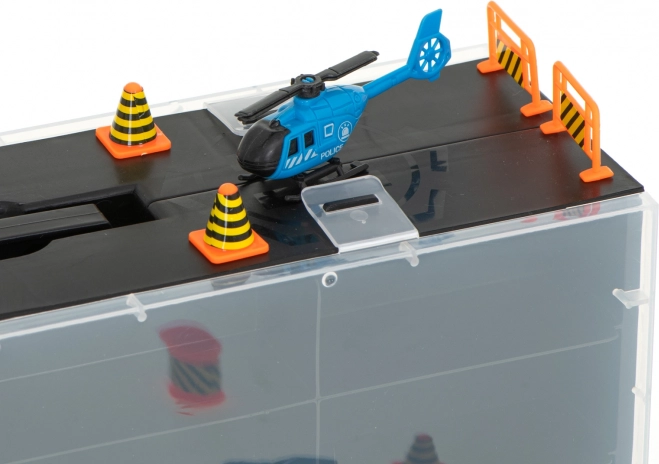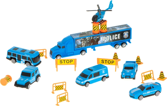 Le set comprend 6 voitures de police en métal finement détaillées et un hélicoptère, complétés par des éléments de signalisation pour des scènes palpitantes. Le transporteur peut contenir jusqu’à 26 petites voitures, offrant ainsi beaucoup d’espace pour de nouvelles pièces de collection.