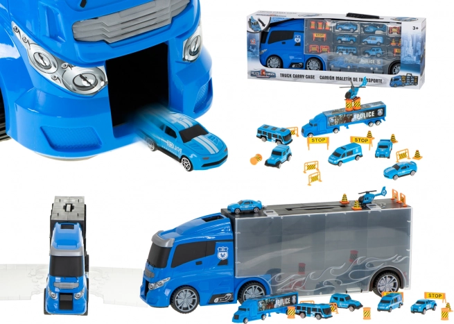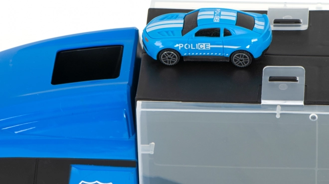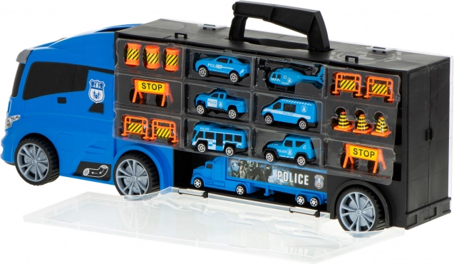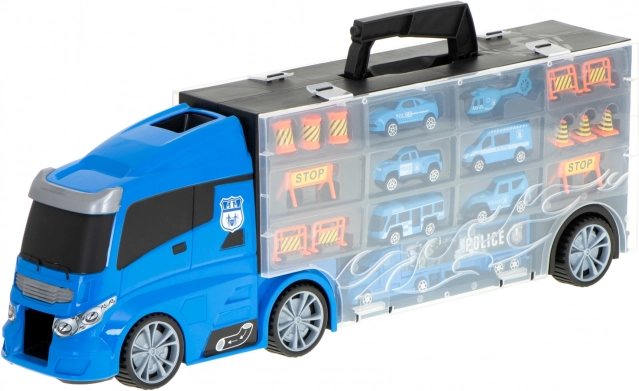 Ce transporteur de police robuste allie amusement, ordre et mobilité. Les compartiments transparents et les portes latérales ouvrantes maintiennent toute la collection bien en place, tandis que le lanceur intégré à l’avant propulse la voiture directement dans l’action. Grâce à sa poignée pratique, le camion se transforme en mallette que les enfants emportent facilement au parc ou chez les grands-parents.