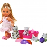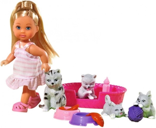 Le set comprend une poupée aux longs cheveux blonds et une robe rose élégante. Il inclut aussi d’adorables jouets chatons qui inspirent des jeux de soin.