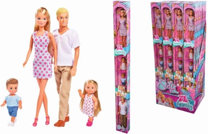 Le coffret familial de poupées Steffi est parfait pour le développement de la créativité des enfants et leurs capacités de narration. Le set comprend quatre poupées : Steffi, Kevin et leurs enfants Timmy et Evi, toutes vêtues dans un style casual elegance. Les hauteurs des poupées sont de 30 cm, 29 cm, 12 cm et 12 cm.