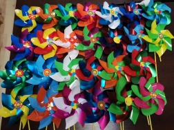 Moulin à vent en différentes couleurs, envoi aléatoire. Grand moulin à vent (mix de couleurs) pour la joie des enfants, qui fera sourire chaque visage d’enfant. Convient pour jouer à la maison ainsi que comme décoration de jardin ou pour les jardinières. Construction améliorée et de qualité pour une fonctionnalité durable. L’axe est équipé d’un boîtier tubulaire supplémentaire qui garantit une rotation durable pendant une très longue période. Le moulin à vent est fabriqué dans l’UE. La longueur totale avec la tige atteint 50 cm. Principales caractéristiques : longueur totale avec tige 50 cm, décoration adaptée à la maison et au jardin