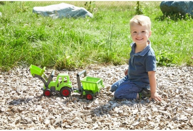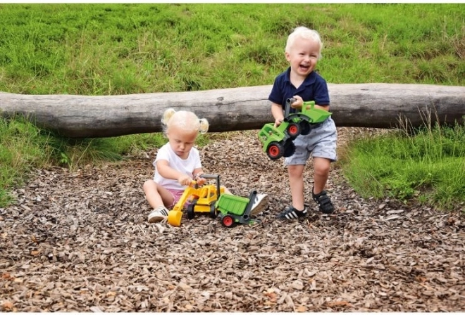 Le tracteur LENA ECO apporte à la fois plaisir et respect de la nature. Grâce à sa fabrication robuste à base de matériaux recyclés et d’un ajout de bois, il est durable et sûr pour les petits conducteurs. Le chargeur frontal est entièrement fonctionnel et permet de ramasser et transvaser des matériaux, ce qui favorise la motricité fine et le jeu créatif.
