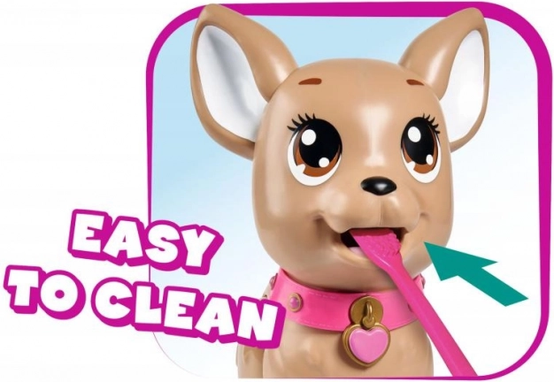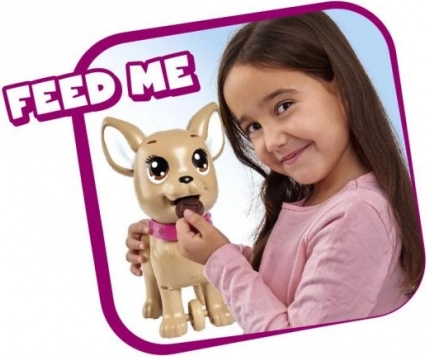 Adorable chihuahua interactif de la collection CHI CHI LOVE, il apprend aux enfants à s’occuper d’un animal de compagnie de manière ludique. Nourris-le avec de la pâte à modeler, pars en promenade et, avec une légère pression sur la laisse, il fera une petite crotte. Inclus : laisse, pâte à modeler, moule et boîte en forme de cœur avec des sachets pour un nettoyage facile. La taille du chien est d’environ 20 cm.
