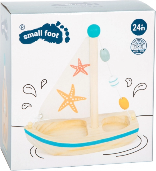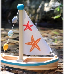 Ce jouet aquatique Small Foot de qualité apporte aux enfants la joie du jeu libre dans l'eau et en dehors. La coque en bois au toucher lisse et la voile en tissu à motif d'étoiles de mer assurent une prise en main sûre et un look attrayant. Sa structure flottante est idéale pour la baignoire, la piscine ou les jeux d'eau estivaux en plein air.