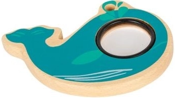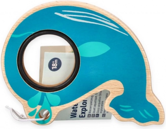 La baleine turquoise en bois et plastique tient parfaitement dans la petite main de l’enfant. Elle aide à entraîner la prise en main, la coordination œil–main et les premières manipulations d’objets, de manière ludique.