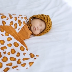 Grâce à ses généreuses dimensions 120 × 120 cm, il est idéal pour emmailloter, couvrir et pour les soins du quotidien à la maison comme en déplacement. Son motif Léopard blanc plaira aux parents à la recherche d’un accessoire pratique au design moderne.