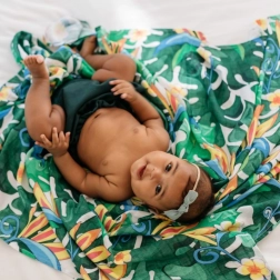 Le format généreux 120 × 120 cm permet une utilisation polyvalente à la maison comme en déplacement. Le design stylé Lush Garden attire le regard et complète à merveille un trousseau moderne pour bébé.