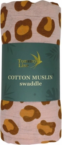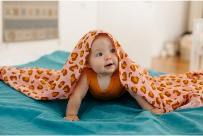 Lange d’emmaillotage en mousseline de coton CORAL LEOPARD 120 × 120 cm