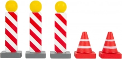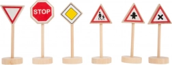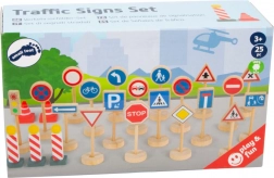 L’ensemble de 25 panneaux de signalisation en bois et accessoires (p. ex. des cônes) aide les enfants à comprendre les règles de circulation dans des scénarios de jeu réalistes. Grâce à des symboles lisibles et à des socles stables, ils sont faciles à manipuler et constituent un excellent complément aux tapis de circulation comme aux circuits de train.