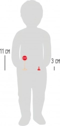 Les panneaux mesurent environ 11 cm de haut, les cônes environ 3,2 cm – une taille idéale pour saisir, construire et créer son propre univers routier.