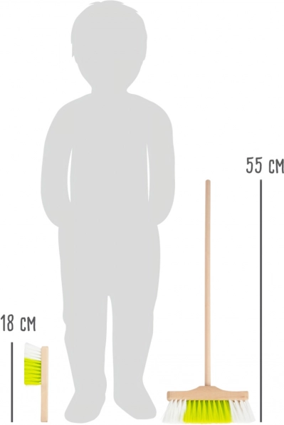 Le balai de 55 cm et la balayette de 18 cm tiennent parfaitement dans les mains des enfants, ce qui les rend faciles à manipuler et rend le ménage naturel et ludique.