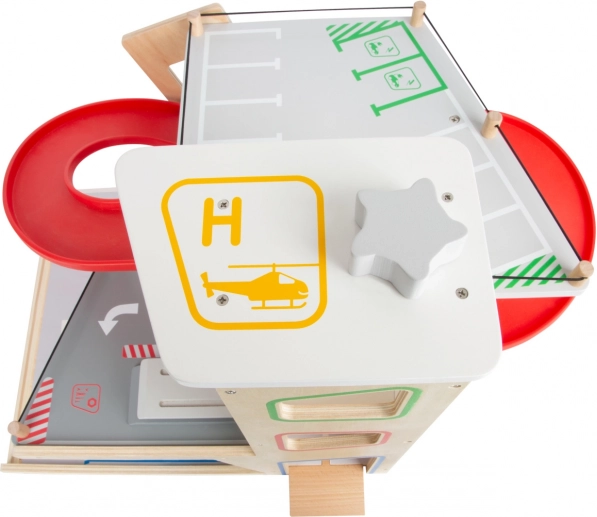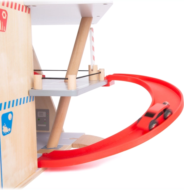 Ce parking premium en contreplaqué de qualité propose trois niveaux richement équipés reliés par un ascenseur fonctionnel et deux rampes fluides. Les enfants peuvent se garer, faire le plein, recharger, laver et réparer – tout au même endroit, avec des éléments réalistes et une excellente jouabilité.