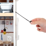 Des détails comme une sonnette fonctionnelle, des portes coulissantes, des fenêtres ouvrables et une table de chevet avec tiroirs ajoutent au réalisme et à l'interactivité du jeu. Les meubles avec des éléments en bois et en plastique sont inclus, renforçant l'expérience de jeu authentique.