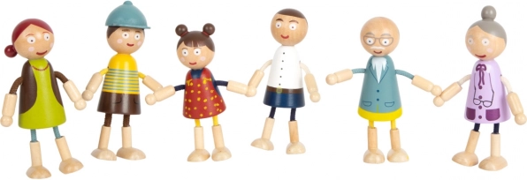 Avec ces figurines en bois de Small Foot, vous pouvez facilement animer votre maison de poupées. Les figurines sont fabriquées en bois de qualité et ont des parties flexibles, permettant leur placement dans diverses positions. Le set comprend une maman, un papa, une grand-mère, un grand-père, un frère et une sœur, tous parfaitement adaptés aux mains des enfants.