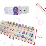 Jeu éducatif en bois 2-en-1 : trieur de formes, boulier et poissons magnétiques