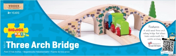 Ce pont élégant à trois arches est un complément parfait à tout circuit de train en bois. Grâce aux détails réalistes de briques de pierre et à sa surface lisse, il apporte du relief et un attrait visuel à votre réseau. Il permet aux trains de passer au-dessus et en dessous du pont, créant ainsi des scénarios de jeu amusants.