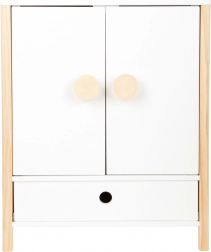La structure en bois robuste, la fabrication stable et les bords arrondis assurent un jeu confortable et sécurisé. L’armoire favorise l’autonomie, le sens de l’ordre et stimule l’imagination lors des jeux de soin des poupées.