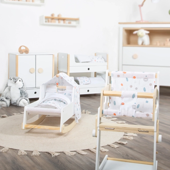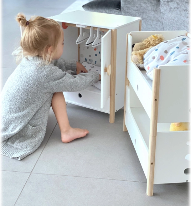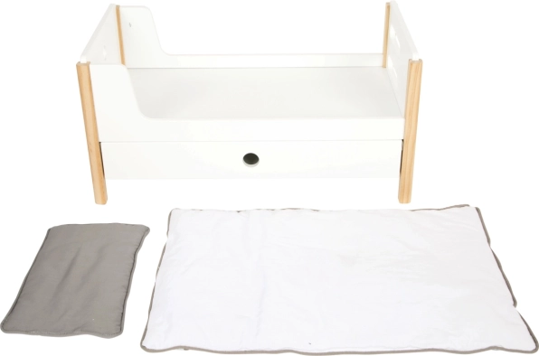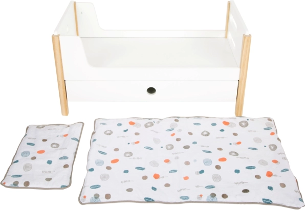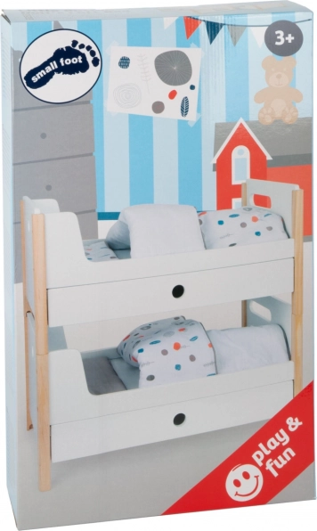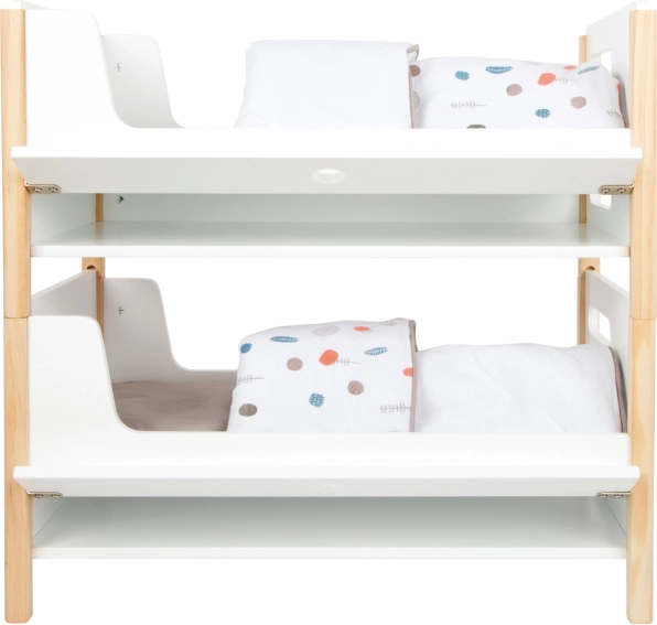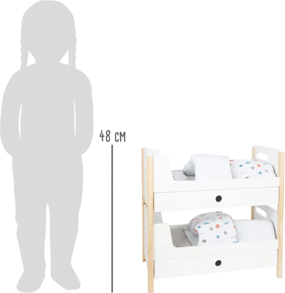 L'emballage comprend un linge de lit aux couleurs neutres et des couettes oversize qui accueillent confortablement des poupées ou peluches jusqu'à 46 cm. Les tiroirs sous chaque lit offrent un rangement astucieux pour les vêtements et petits accessoires. Un complément idéal pour la chambre d'enfant comme pour un coin poupées stylé au sein de la collection Little Button.