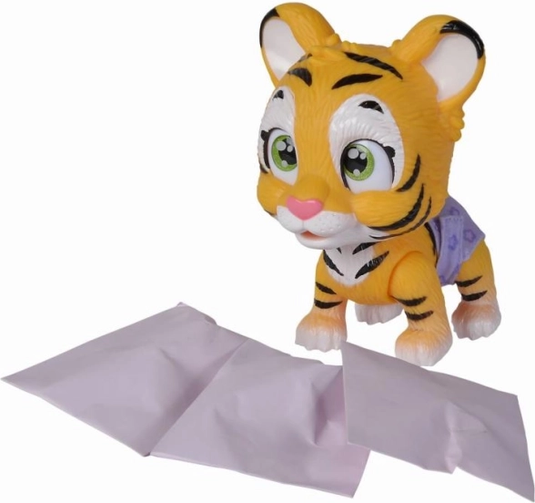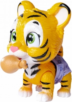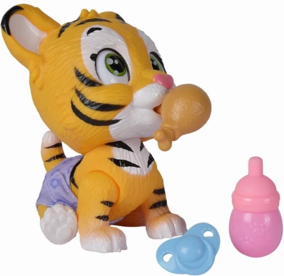 Le tigre boit de l'eau avec la bouteille fournie et sa couche change de couleur - un jeu authentique pour les enfants.