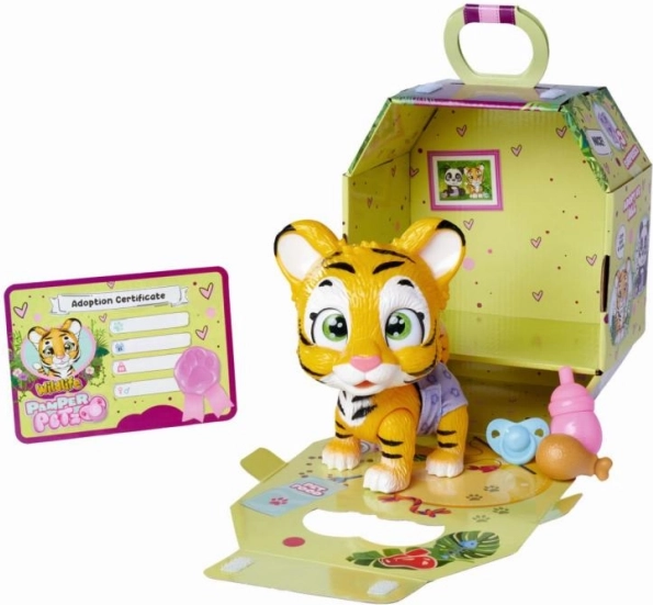Le jouet tigre Pamper Petz est un excellent compagnon pour les petits amoureux des animaux. Ce tigre mignon boit de l'eau et change la couleur de sa couche comme un véritable animal, ce qui apporte amusement et authenticité aux jeux des enfants.