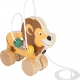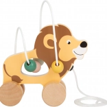 Ce lion à tirer en bois de qualité allie jeu et apprentissage. Les enfants peuvent déplacer les perles sur le labyrinthe métallique situé sur le dos du lion, ce qui entraîne la préhension, la précision et la concentration. Des roues lisses et une corde pratique invitent à tirer le jouet, ce qui motive à la marche et au mouvement naturel.