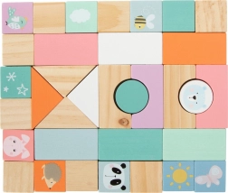 - 34 cubes en bois dans des tons naturels et pastel pour des constructions créatives