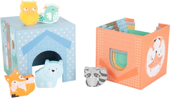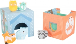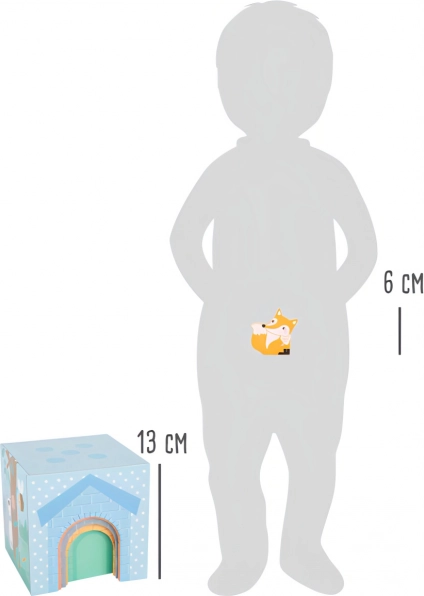 Les cubes peuvent être empilés en une tour haute ou imbriqués les uns dans les autres. Les fenêtres et petites portes invitent à des cache-cache avec les animaux et stimulent l’imagination ainsi que la motricité fine.