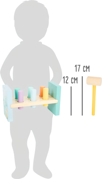 Ce jouet est conçu pour développer la motricité fine et la coordination main-œil chez les enfants. Les chevilles colorées et le petit marteau incitent les enfants à jouer et améliorent leur force et coordination.