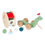 Nous vous présentons un adorable escargot en bois à ficelle, qui non seulement amuse mais aide aussi au développement de votre enfant. Grâce à sa légèreté et ses roues facilement tournantes, il est idéal pour les enfants qui commencent à marcher, soutenant leur coordination et leur équilibre. De plus, l'escargot sert de trieur avec cinq formes différentes, stimulant les capacités cognitives et la motricité fine.