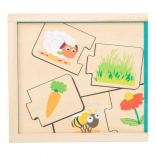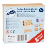Apprenez et amusez-vous avec ce jeu en bois qui enseigne à votre enfant quels animaux mangent quoi. Puzzle, mémo et jeu d'appariement en un seul paquet.