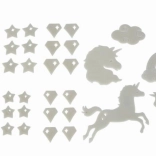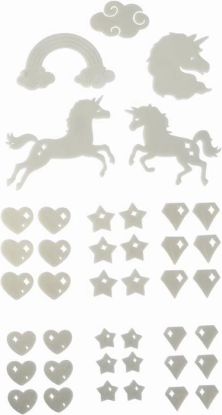 Créez une atmosphère magique en un instant. Le set de décorations fluorescentes au motif licorne, après exposition à la lumière, émet une douce lueur dans l’obscurité et transforme toute chambre d’enfant en royaume féerique. Les éléments se fixent facilement grâce à la pâte adhésive incluse.