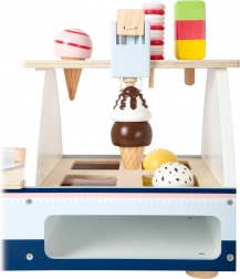 Une vitrine transparente et un congélateur permettent un jeu réaliste et la présentation des glaces.