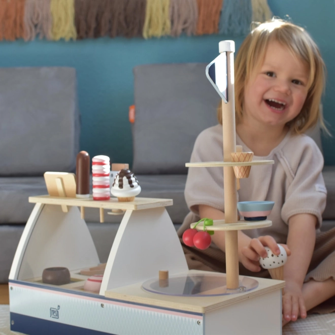 Le stand de glace de Small Foot offre aux enfants des possibilités de jeu enthousiasmantes qui stimulent la créativité et le jeu imaginatif. Le stand est équipé de boules de glace magnétiques pouvant être empilées et combinées selon les envies.