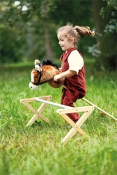 Le cheval bâton en peluche Nico est le compagnon idéal pour les petits cavaliers. Sa tête en peluche douce avec bride et rênes invite aux jeux imaginatifs, tandis que la tige en bois avec poignées stables et roulettes assure un déplacement confortable et fluide sur le sol comme dehors. Les enfants profitent d’une expérience plus authentique grâce à l’effet sonore – en appuyant sur les oreilles, le cheval hennit joyeusement.