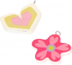 Cinq couleurs, des formes variées et trois pendentifs joyeux permettent de créer des bracelets et des colliers originaux selon l’imagination.