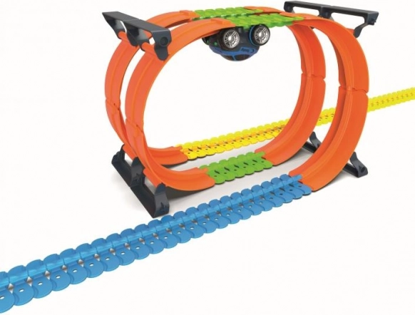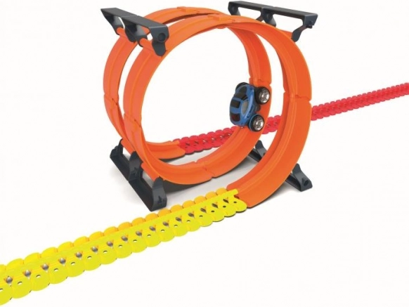 Combinez deux loopings en une boucle géante et offrez aux petites voitures un passage à grande vitesse avec un effet de force G impressionnant.
